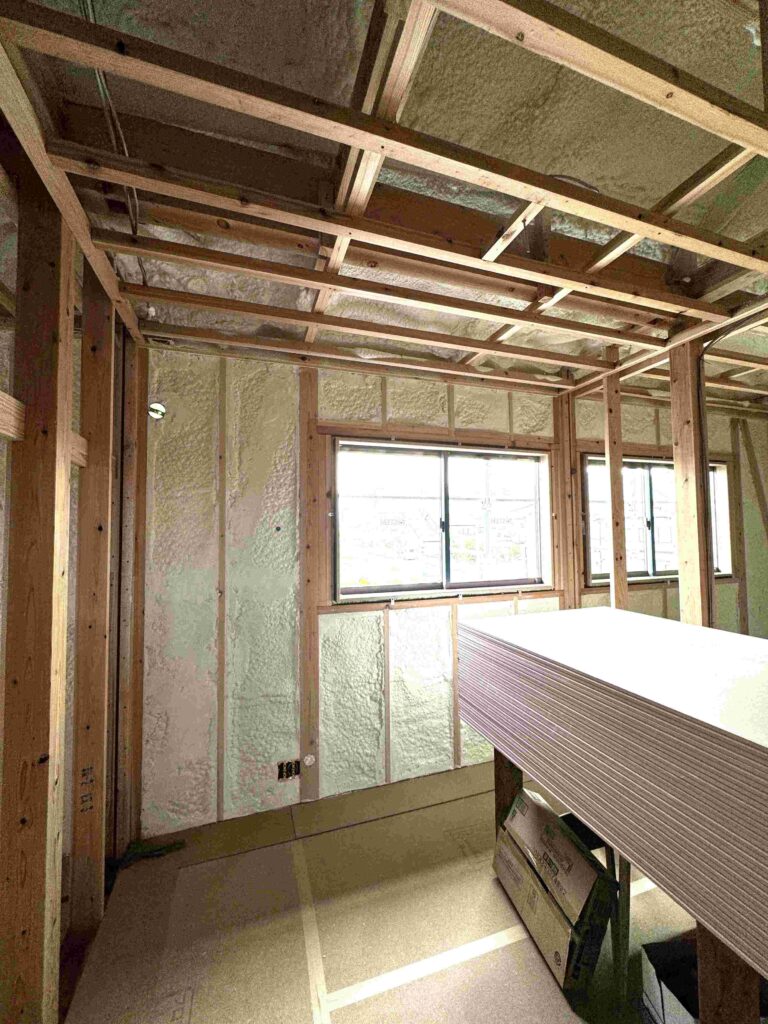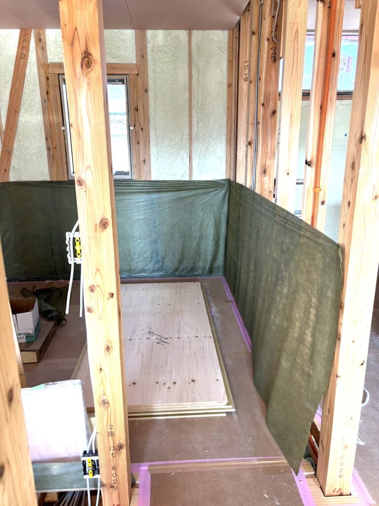 室内に面する部分に、遮熱通気防水シート貼りも終えています。