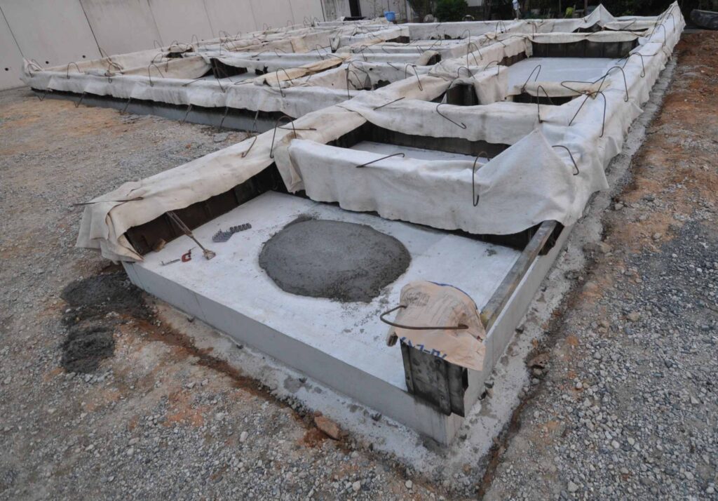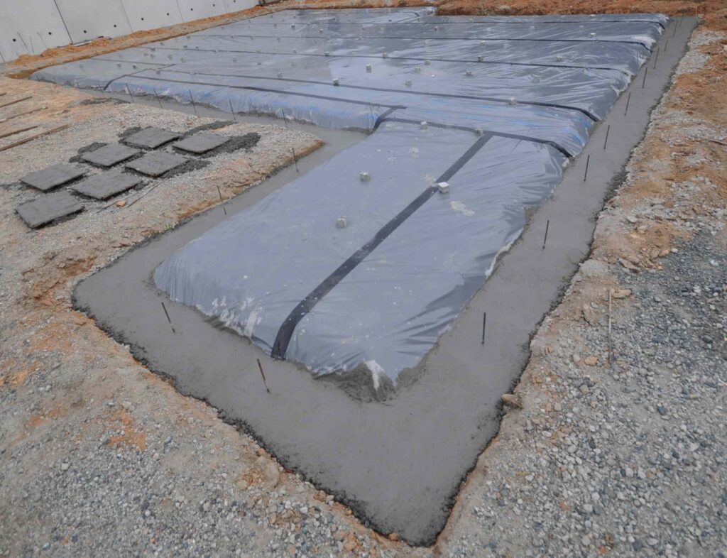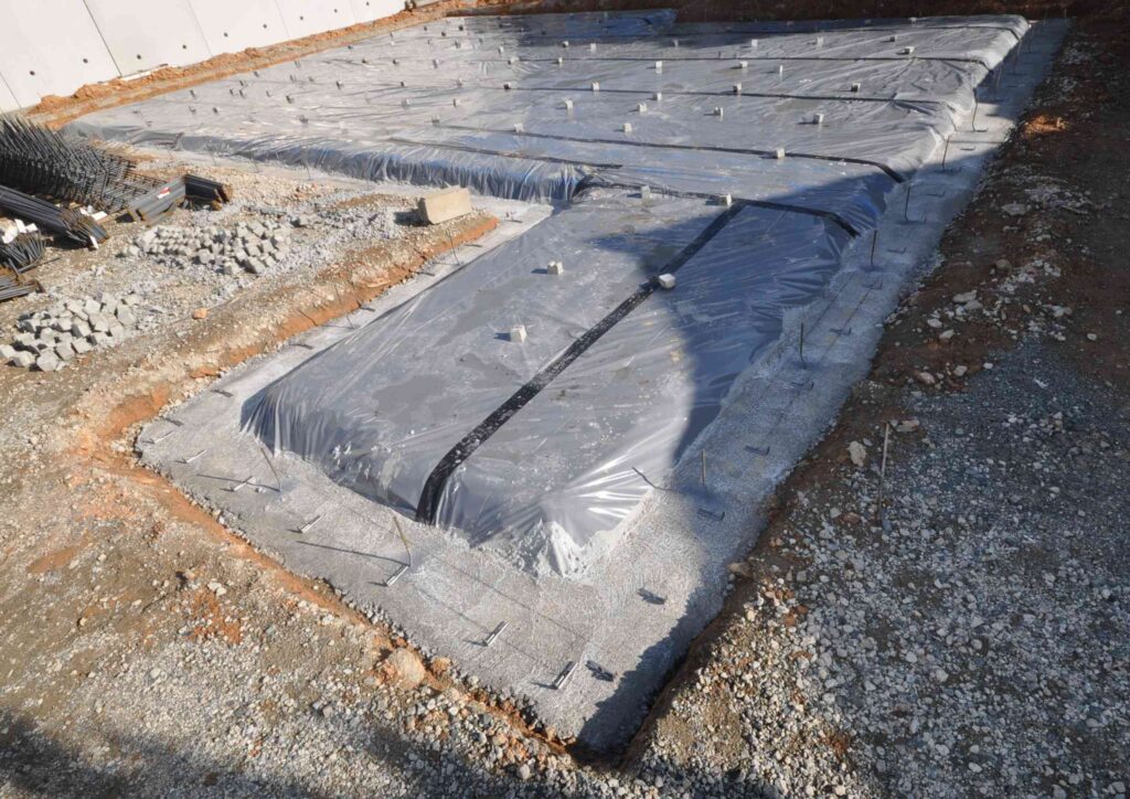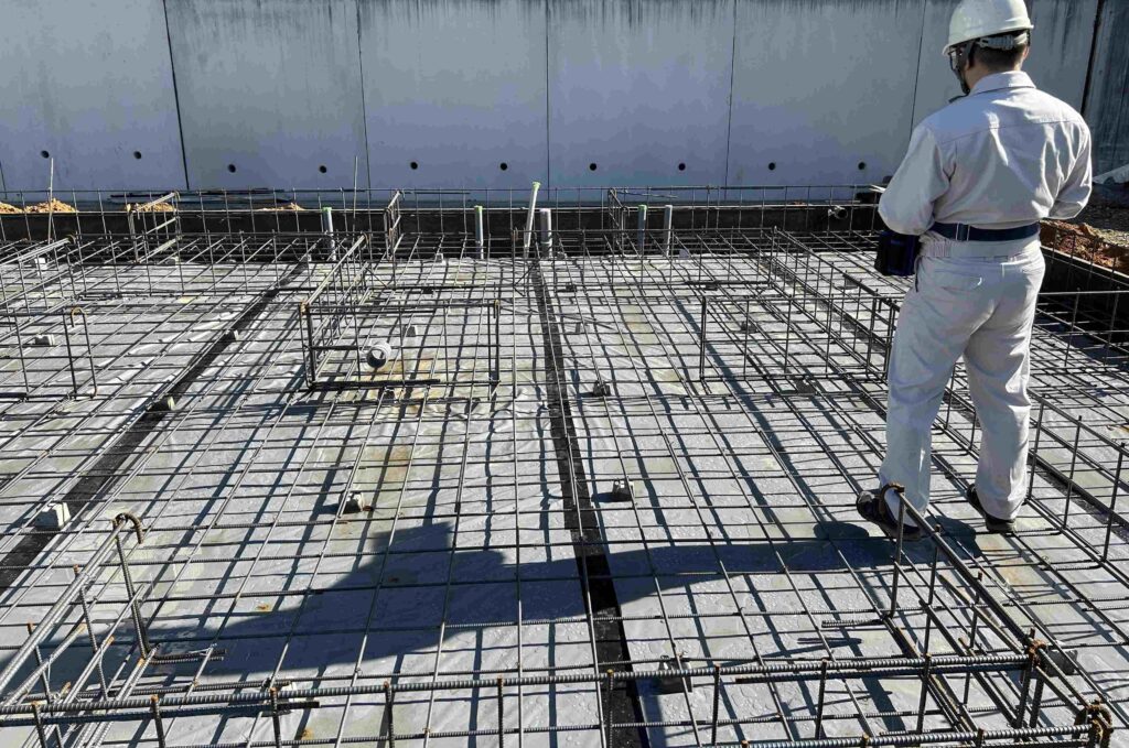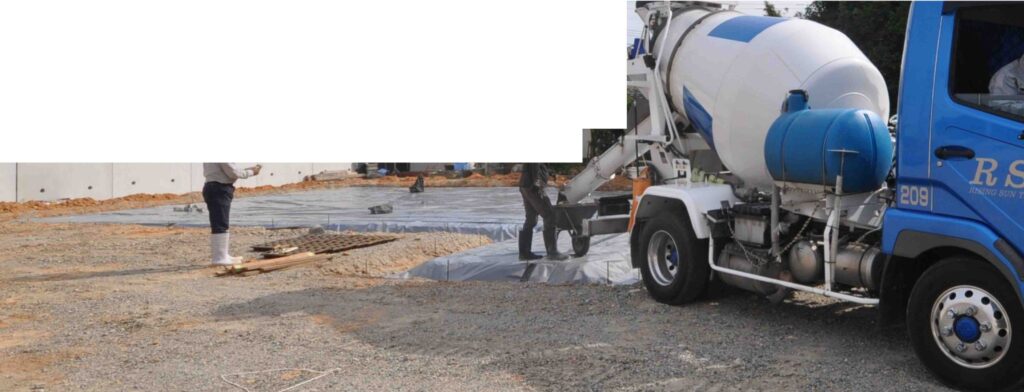 ②コンクリートの水分が地面に吸収しないようにして、コンクリートが硬化する際に必要な水分を確保し、急激な乾燥によるひび割れを防ぐ効果。
