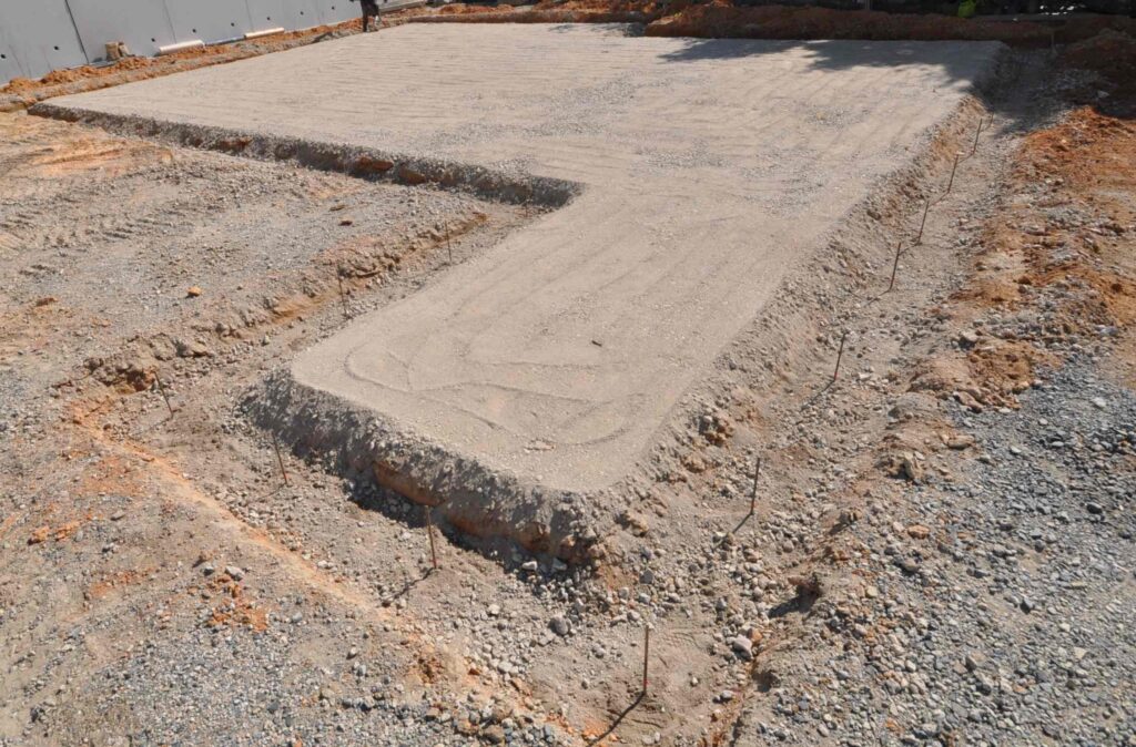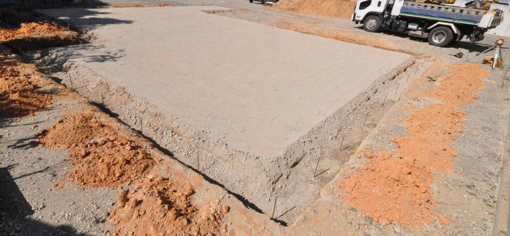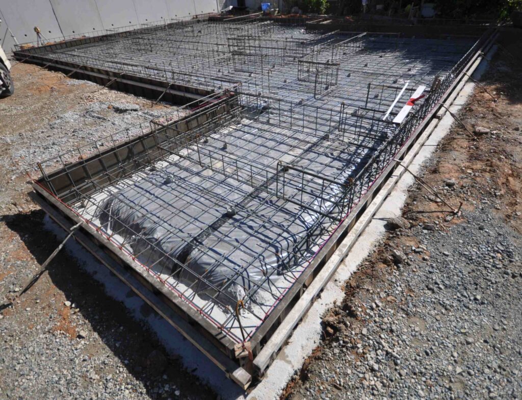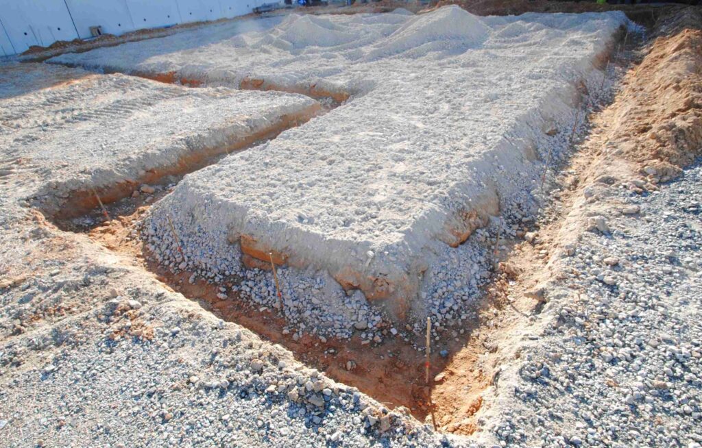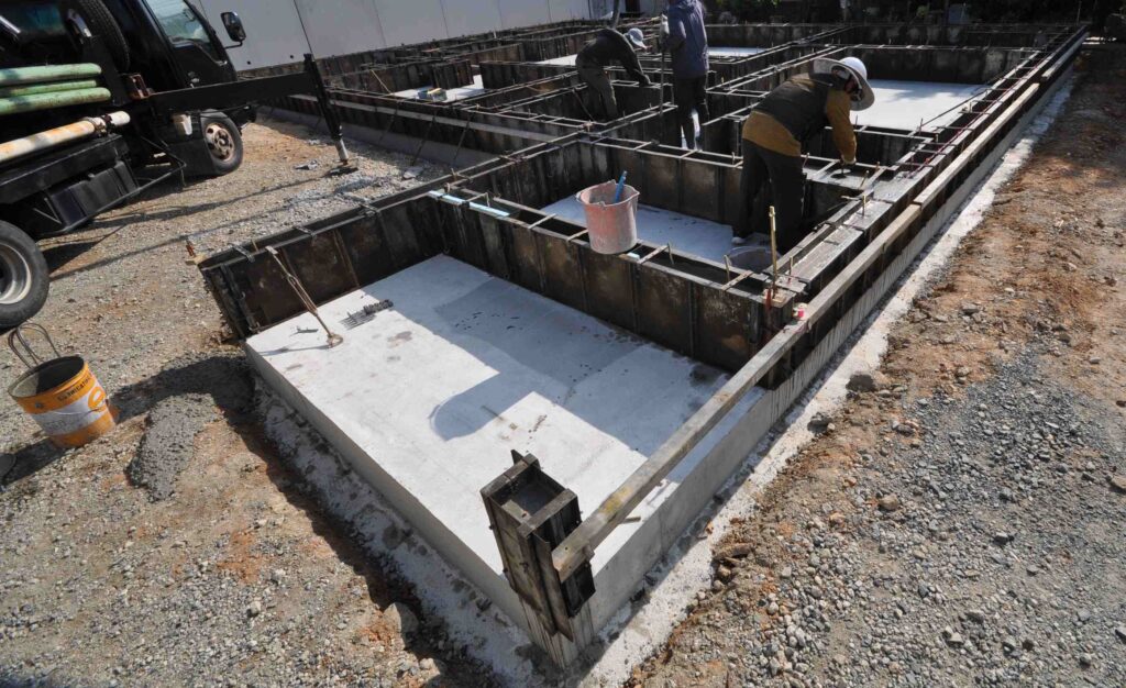均(なら)した『捨てコン』に後日工程で、『墨出し』をおこない、正確な位置に型枠を組みます。