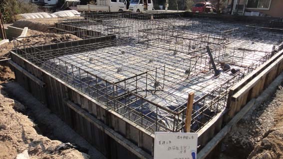 住宅を工事する会社は、建物が一定の範囲を超える傾きが発生した場合、10年間、保証する事が義務化されています。しかし、万が一、10年後に工事をおこなった会社が存在しなかった場合、お客様(施主)に経済的な負担がかかってしまいます。その為に、瑕疵保険(10年保証・更新をおこない20年、30年・・・可能です。)に加入しなければならず、基礎の鉄筋状況を、瑕疵保険会社の建築士が検査をおこないます。