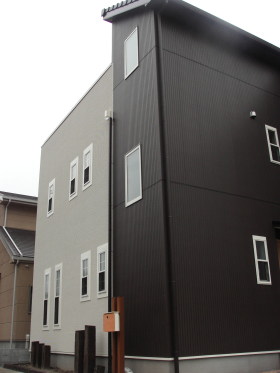 瓦葺きの片流れ屋根です。小屋裏空間に3階の階段室を設け、屋上まで室内階段で行けるようにしました。