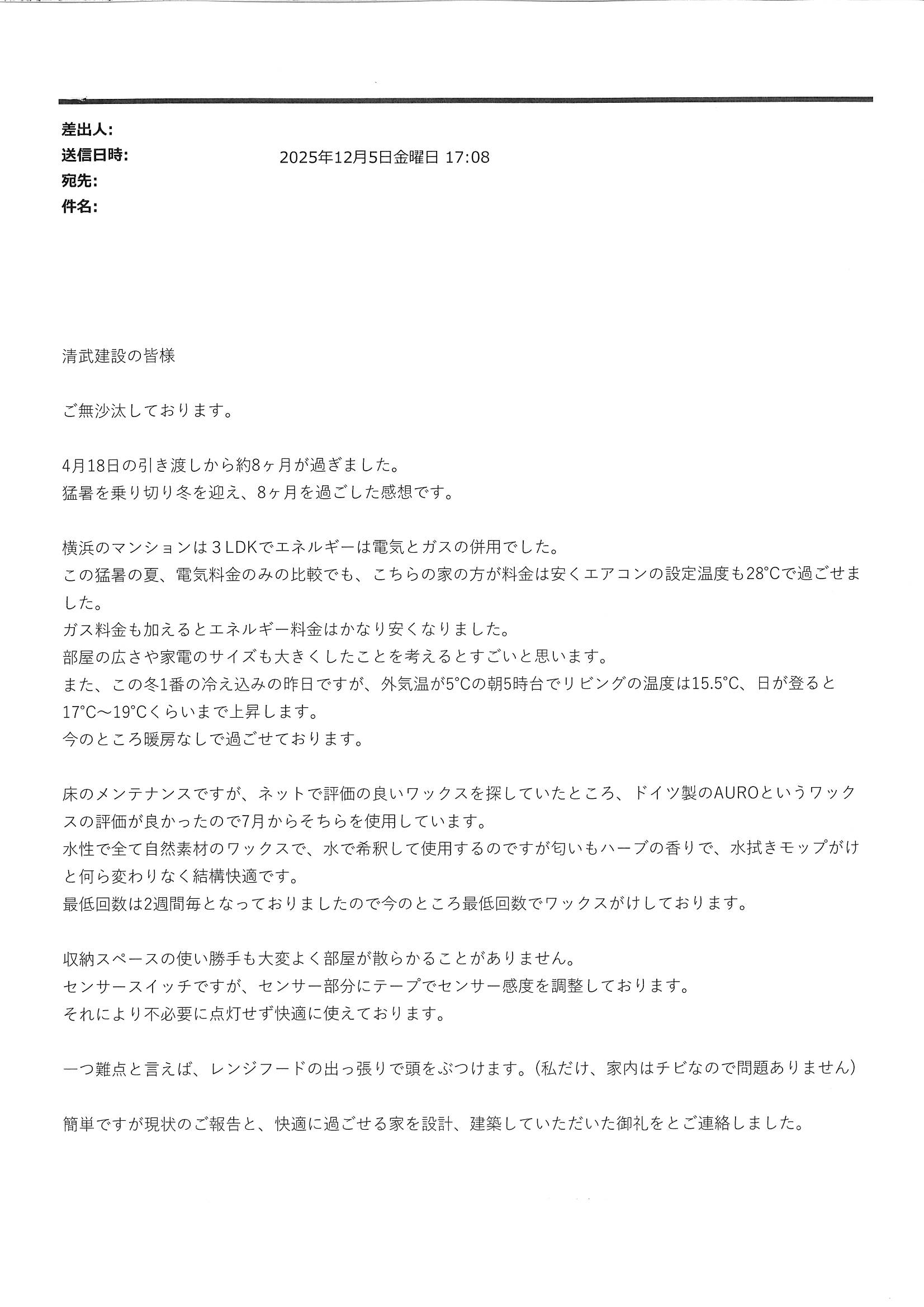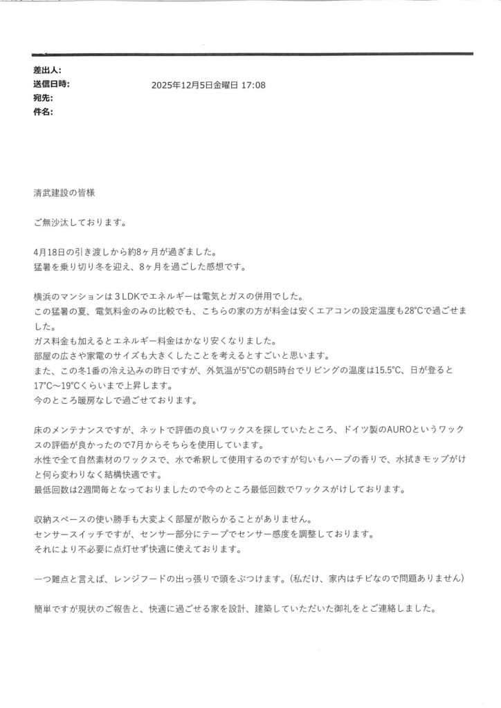 補修部分が残ってしまいましたが、お引渡しさせていただきました。