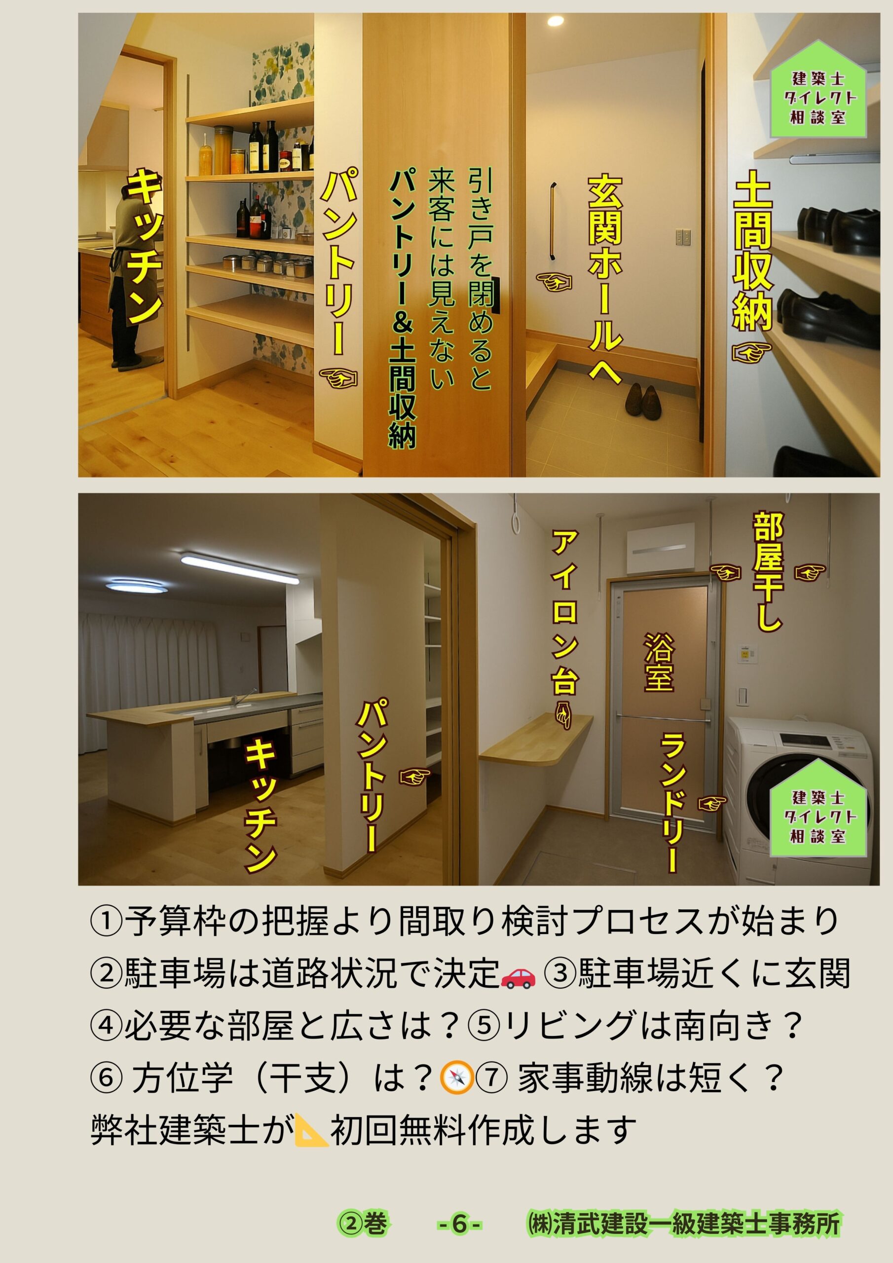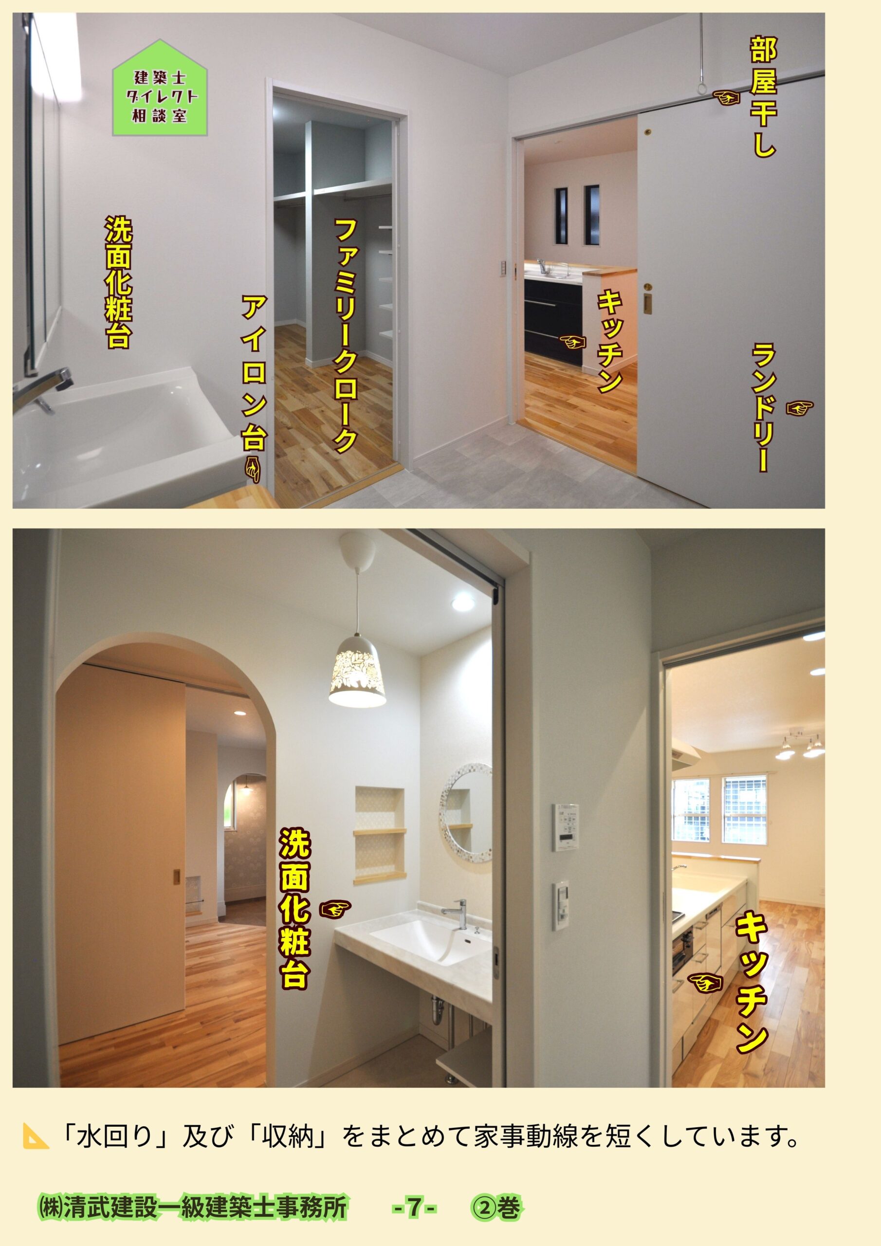 弊社で作成した小冊子の一部を掲載します。家事動線、水回り動線を考えた事例です。